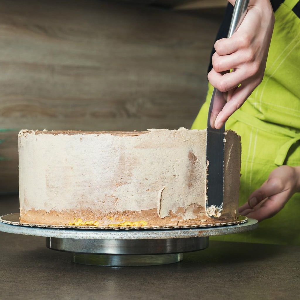 • This cake icing spatula helps frost hard to reach areas and keep your hands and fingers away from the icing.