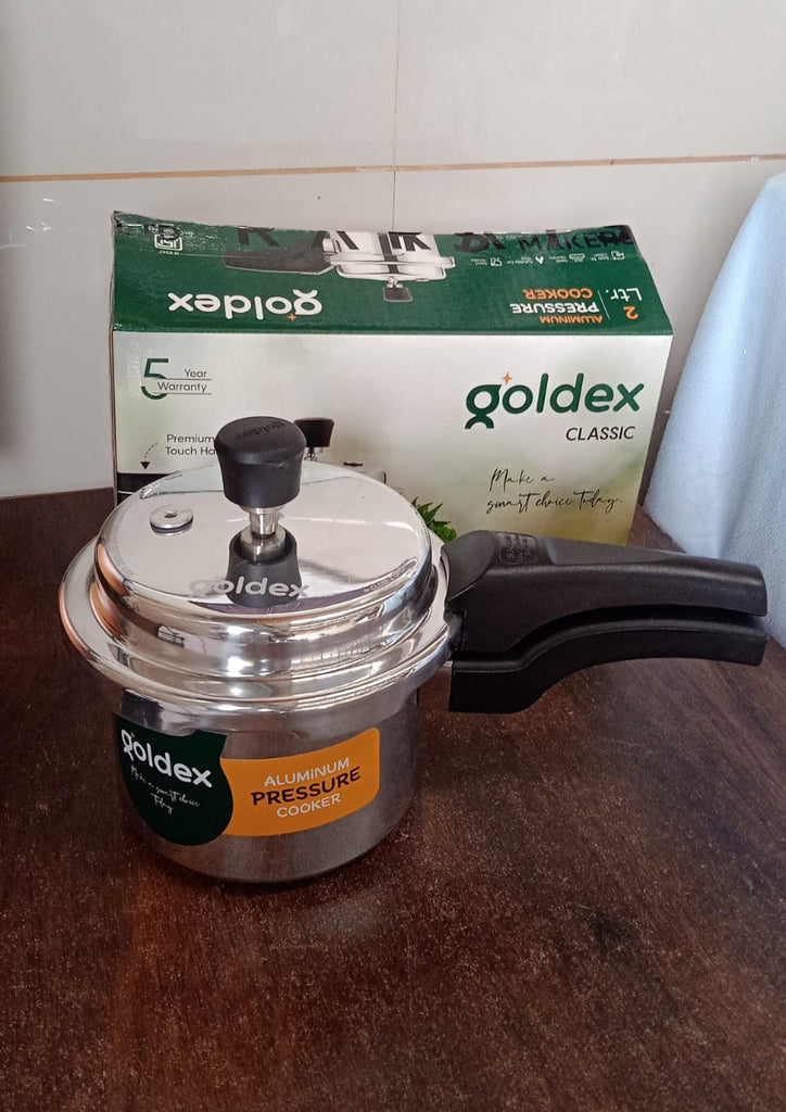 Aluminium Classic Goldex Pressure Cookers With Outer Lid Pressure Cooker, Heavy Bottom, Easy Open and Close, Healthy Cooking (Non-Induction Base) (2 Litres / 5-Year warranty)