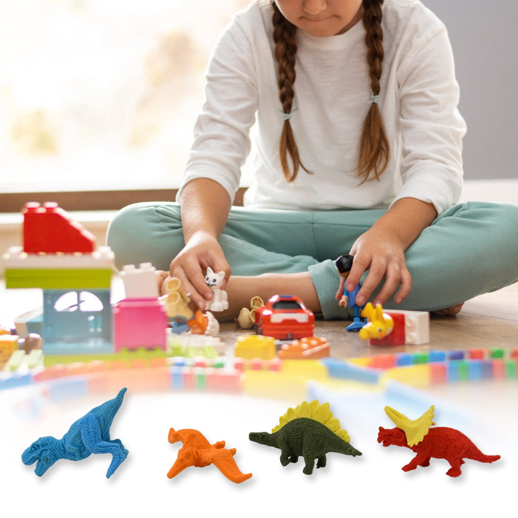 - Educational Pencil Erasers: Our erasers set helps to develop kid's creativity, patience, and hand-eye coordination. The bright colors and attractive figures will easily attract kid's attention and draw them to the fancy dinosaur world.