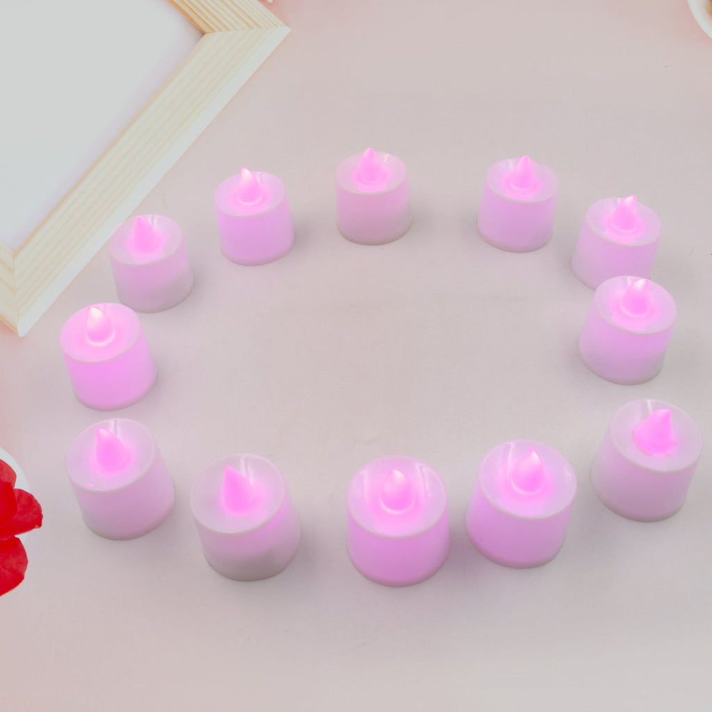 6632A Pink Flameless LED Tealights, Smokeless Plastic Decorative Candles - LED Tea Light Candle For Home Decoration (Pack Of 12pc) (Diya, Divo, Diva, Deepak, Jyoti)