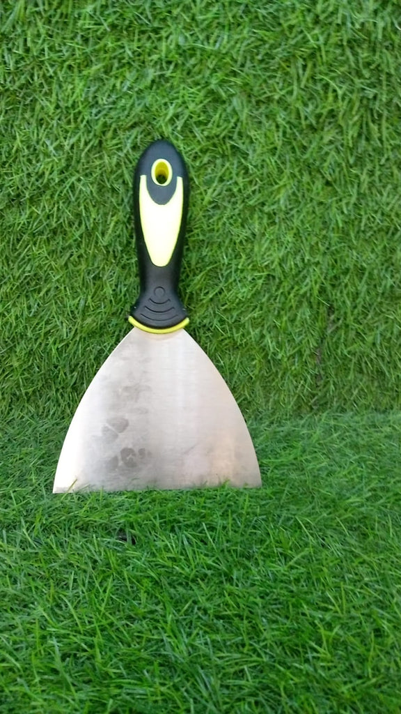 • The putty knives are built with a large rubber handle gives you a comfortable edge to grasp that let you work with minimal effort. Unlike wooden handles, this non-slip handle will not decay in wet circumstances