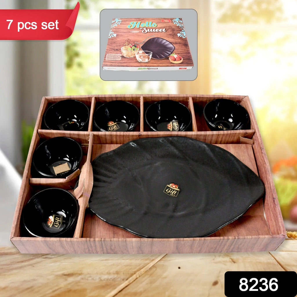 6 pcs bowl & 1 pc serving Platter Made From High-quality Ceramic Material Bowl & high quality plastic platter.