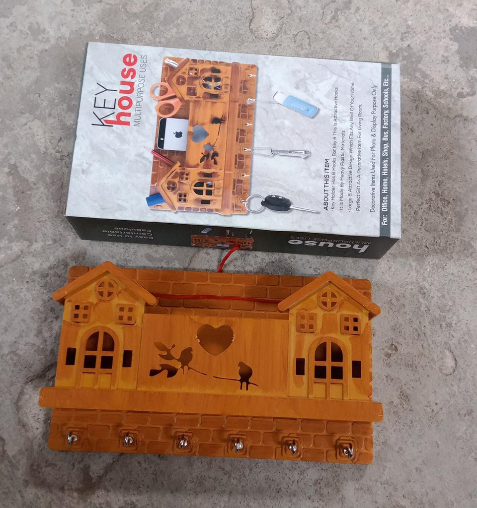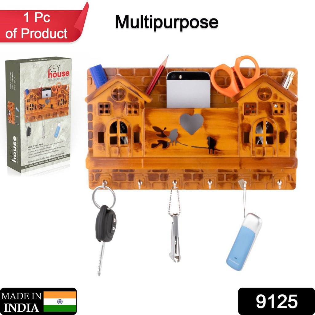 9125 6 Hooks House Design Wooden Keys Stand for Entryway, Kitchen, Office, Mudroom Wall, Mount Decorative Keys Organizer Key Holder.
