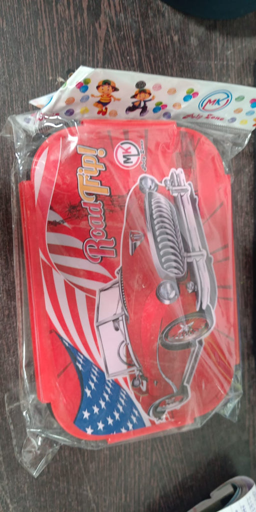 5982 Beautiful Car Design Printed Plastic Lunch Box With Inside Small Box & Spoon for Kids, Air Tight Lunch Tiffin Box for Girls Boys, Food Container, Specially Designed for School Going Boys and GirlsÂ
