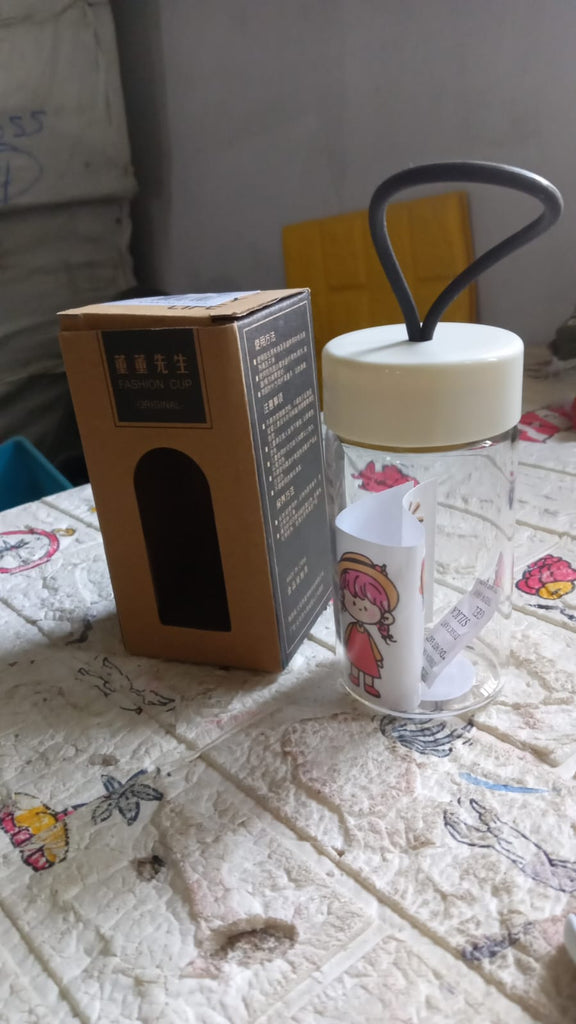 7335 Outdoor Sport Glass water bottle 350ml leak proof BPA-free for travel cold and hot water glass water bottle with daily water intake for gym and children, Home, Travel, Office Use