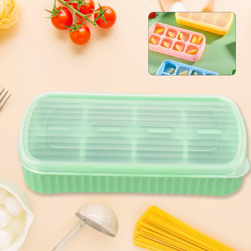 Ice Mold, 8 Grid Food Grade Portable Silicone Ice Tray Anti Slip for Kitchen for Home With Plastic Lid (1 Pc / 14×7 Cm)