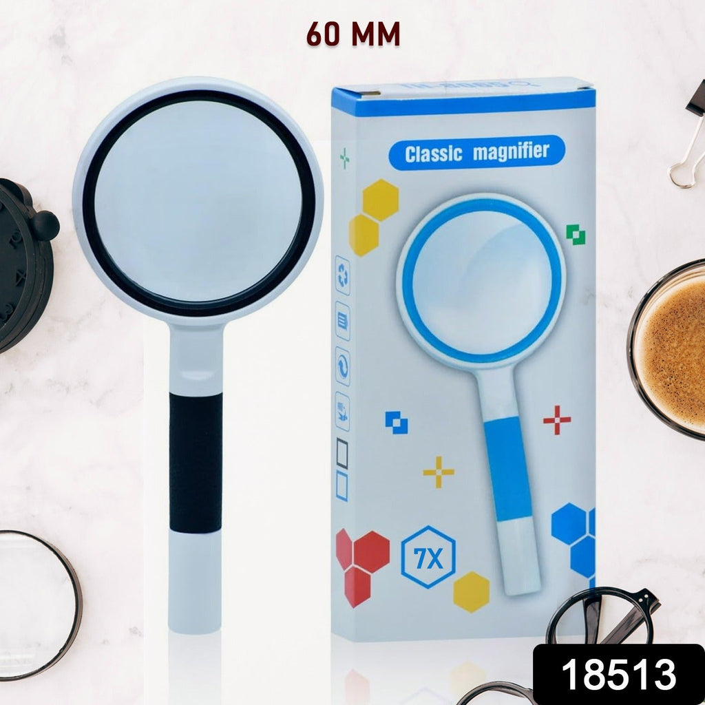 Optical Grade Lenses With 7x Magnifying Glass Handheld Magnifier for Reading Magnifying Glasses, Metal Frame for Book and Newspaper Reading, Insect and Hobby Observation, Map (60 MM / 1 Pc)