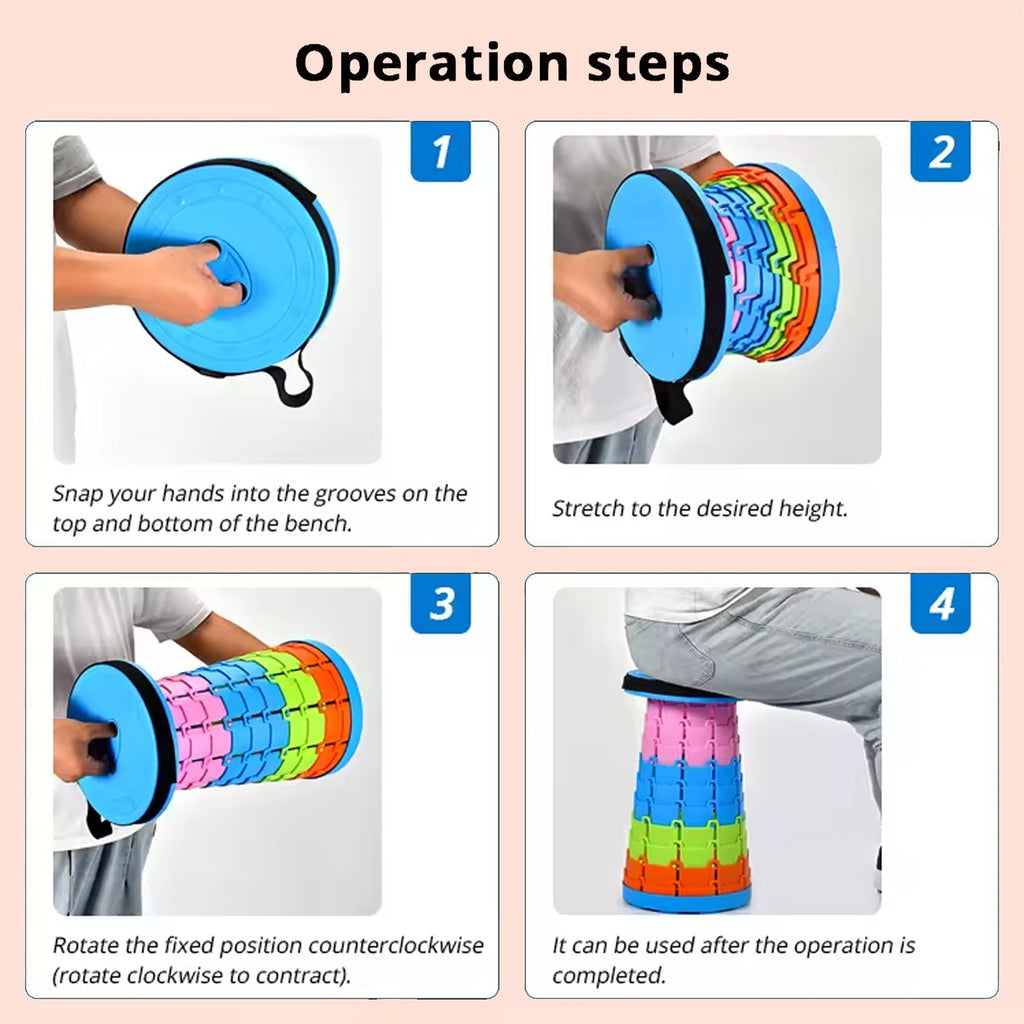 The telescopic stool is equipped with an adjustable. So you can take them anywhere. Such as living room, bedroom, office, camping, travel, fishing, picnics, BBQ, gardening, etc.