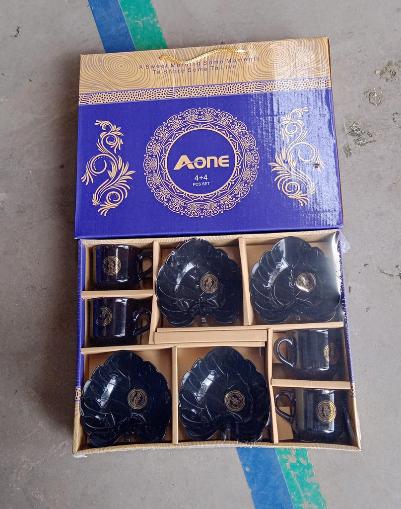 A One Ceramic Tea / cups / Mug Set With Leaf Shape Serving Bowl Milk Cup, Coffee Cup, Tea Cup, Breakfast Cup, Drinking Mug or Outdoor for Household, Gift for Birthday, Wedding Party (8 Pcs set)