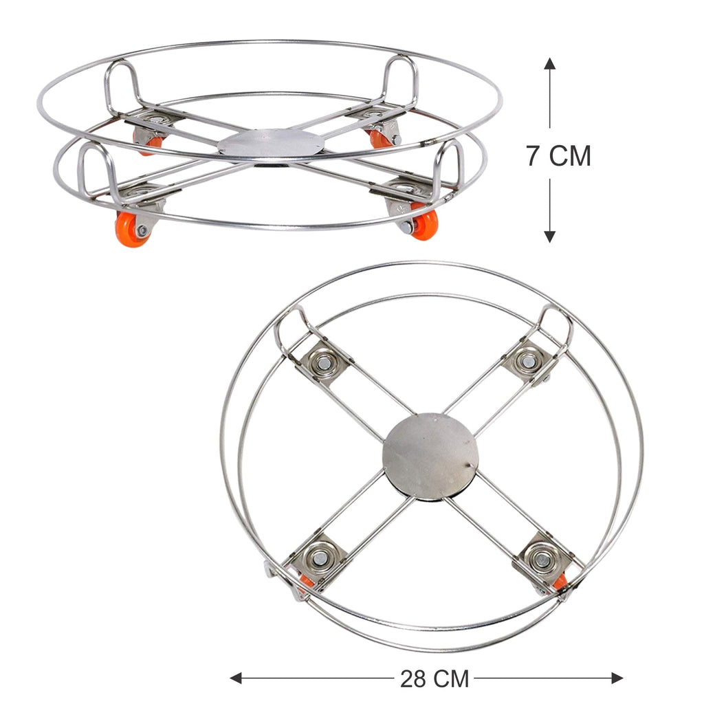 Stainless Steel Cylinder Trolly with 4 Wheels (Silver)