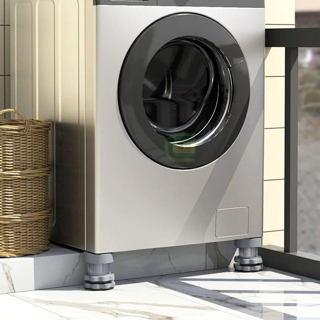 - Easy to install: Just install washing machine anti vibration pad under the feet of a washing machine or dryer, no tool or messy adhesive is required. After installation, your furniture and home appliances raised by a few centimeters for convenient cleaning and preventing moisture.